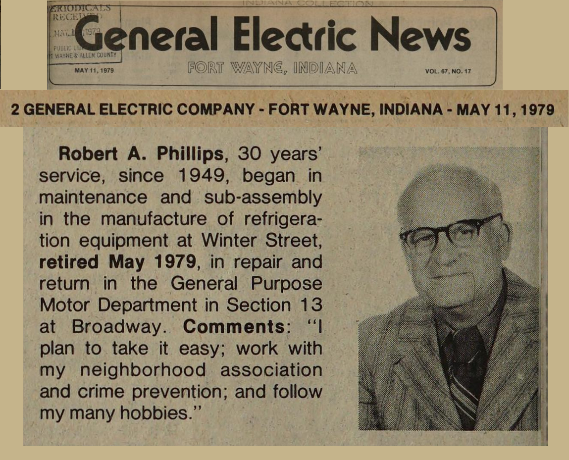 Robert Phillips worked for General Electric in Fort Wayne for 33 years. Retiring in 1979, he organized the Poplar Neighborhood Association in the early 1980's according to his daughter Rita who still lives in the Poplar neighborhood in 2024. Rita explained that her father spoke with a Fort Wayne Police Officer who recommended that an association be organized.